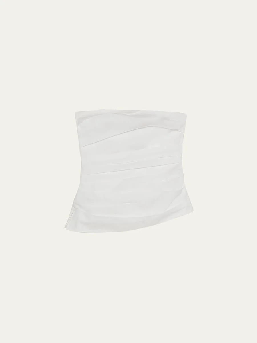 SIMKHAI "Emerson" crisp cotton poplin top finished with ruching Strapless neckline Sleeveless Fitted Side zip closure Cotton/polyester Dry clean or machine wash cold Imported Online Inquiries: BGS21_T6P7T| Store Inquiries: #5011716
