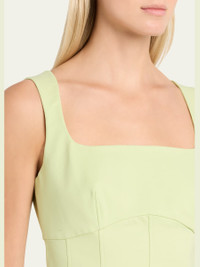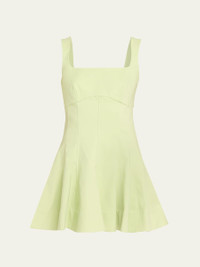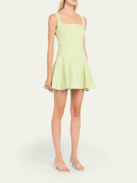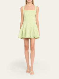 SIMKHAI "Emslie" mini dress adorned with a corsetstyle bodice. Square neckline Sleeveless Aline silhouette Hem falls above the knee Side zip Cotton/nylon/polyamide/spandex Lining: Polyester Dry clean Imported