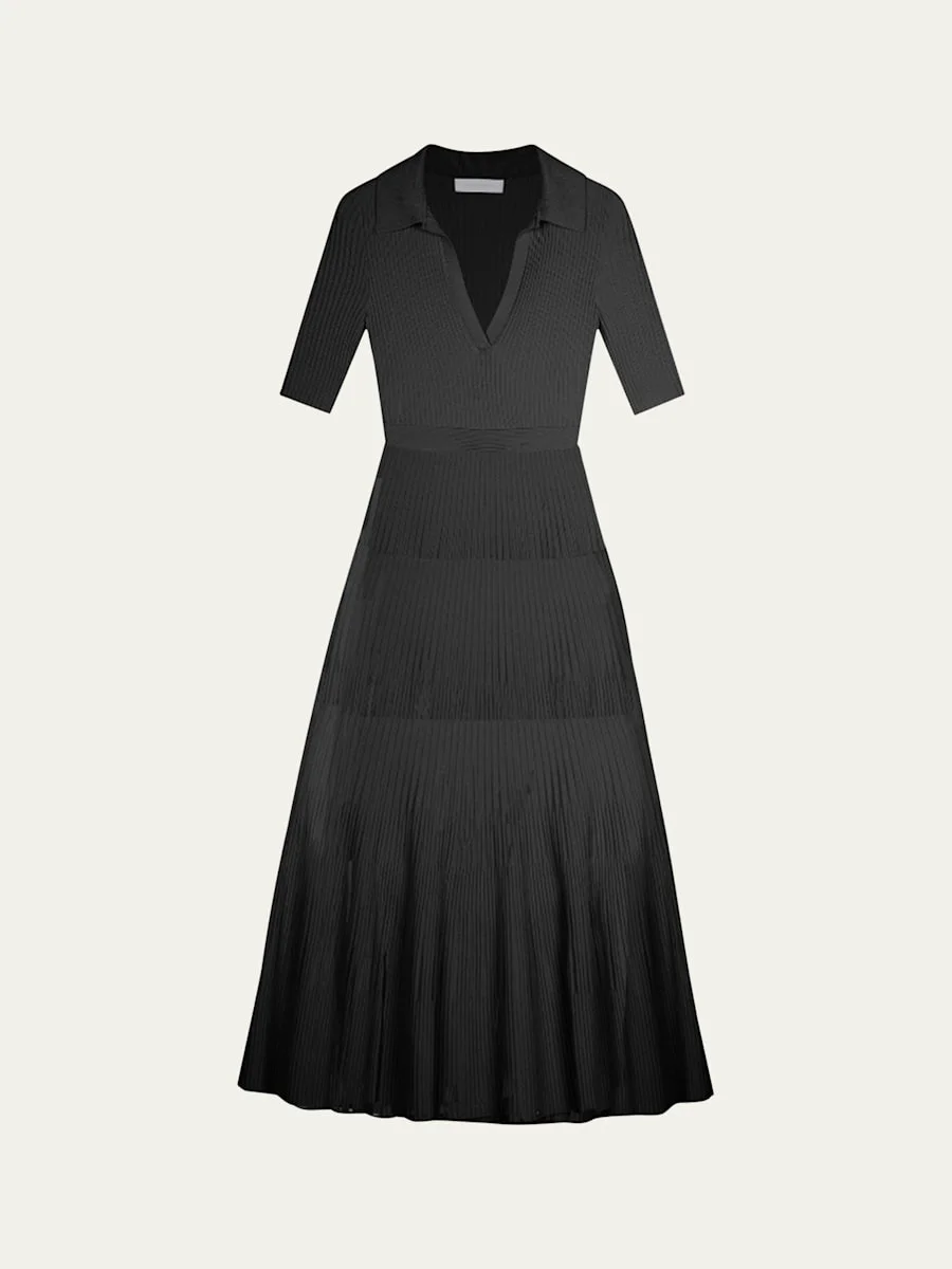 SIMKHAI "Pati" ribbed midi polo dress Point collar; V neckline Short sleeves A-line silhouette Hem falls below the knee Slipover style Rayon/cellulose acetate/nylon/polyamide/spandex Dry clean Imported Online Inquiries: BGS21_T6FZU| Store Inquiries: #4977972