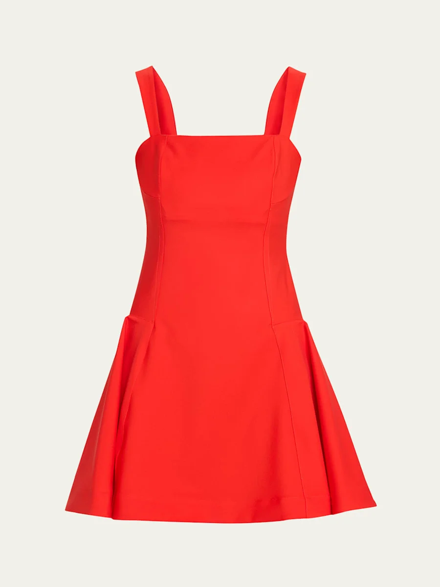 SIMKHAI "Sadie" mini dress featuring a square-neckline Sleeveless A-line silhouette Hem falls above the knee Invisible back zip Nylon/polyamide/spandex Dry clean Imported Online Inquiries: BGS21_T67Y0| Store Inquiries: #4924039