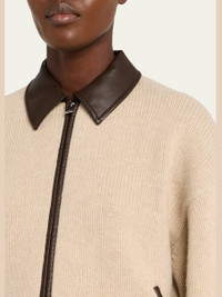Knitted in soft wool with contrasting leather trim, the "Zofia" cardigan by SIMKHAI offers comfort and warmth without compromising style. Spread collar Dropped shoulders Long curved sleeves with ribbed cuffs Angled pockets Relaxed fit Ribbed hem Two-way zip-front Wool Dry clean only Imported Online Inquiries: BGS21_T6Z26| Store Inquiries: #5072800