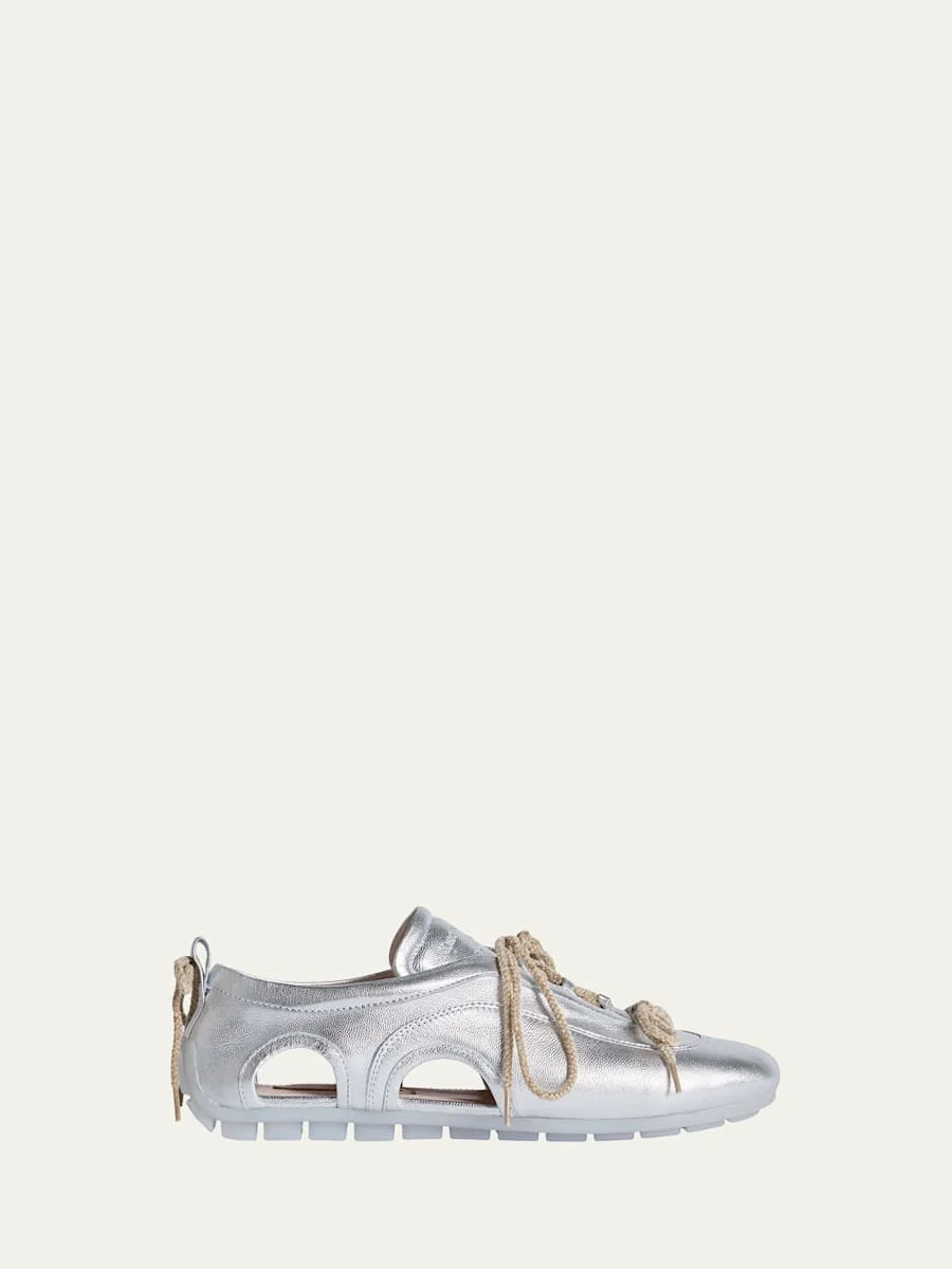 Cutout Metallic Leather Ballerina Sneakers