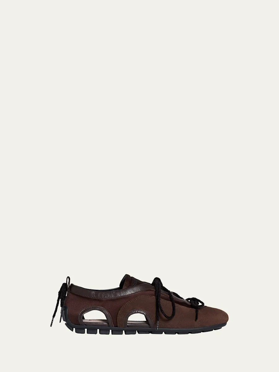 Cutout Mixed Leather Ballerina Sneakers