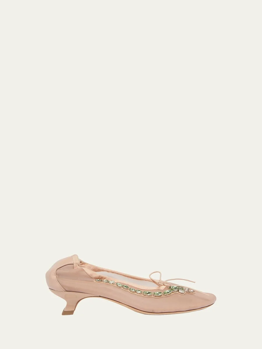 Simone Rocha ballerina flats in flowerembellished mesh polyester 1.50 in / 40 mm kitten heel Round toe Bow at vamp Slipon style Leather outsole Lining: Leather Made in Portugal