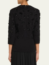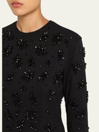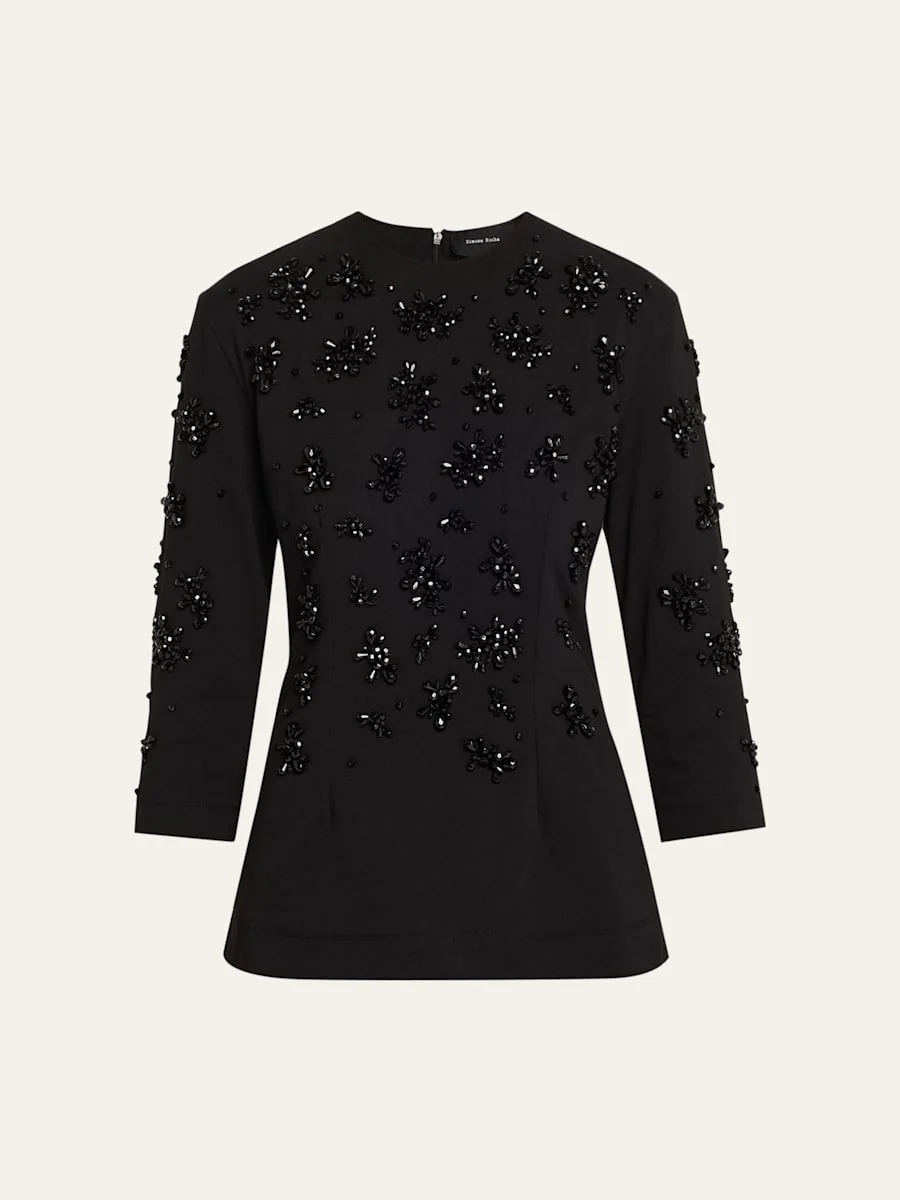 Simone Rocha "Turbo" top is crafted of jersey, embellished with allover crystal embroidered clusters Crew neckline 3/4 sleeves Fitted Invisible back zip Cotton Made in Portugal Online Inquiries: BGS21_BA8SJ| Store Inquiries: #5055357