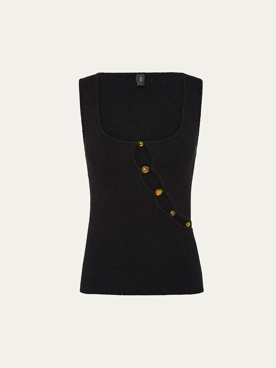 SIR "Chiara" stretch knit tank top embellished with gold-tone beads Square neckline Sleeveless Fitted Hem sits at the hip Pullover style Cotton/nylon/polyamide Unlined Dry clean Imported Online Inquiries: BGS21_T6UN6| Store Inquiries: #5036435