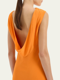 The "Isla" gown by SIR is crafted from lightweight crepe de chine with an elegant open cowl back detail High neckline Sleeveless Tucks at the shoulders Floor length Column silhouette Silk Fully lined Dry clean Imported