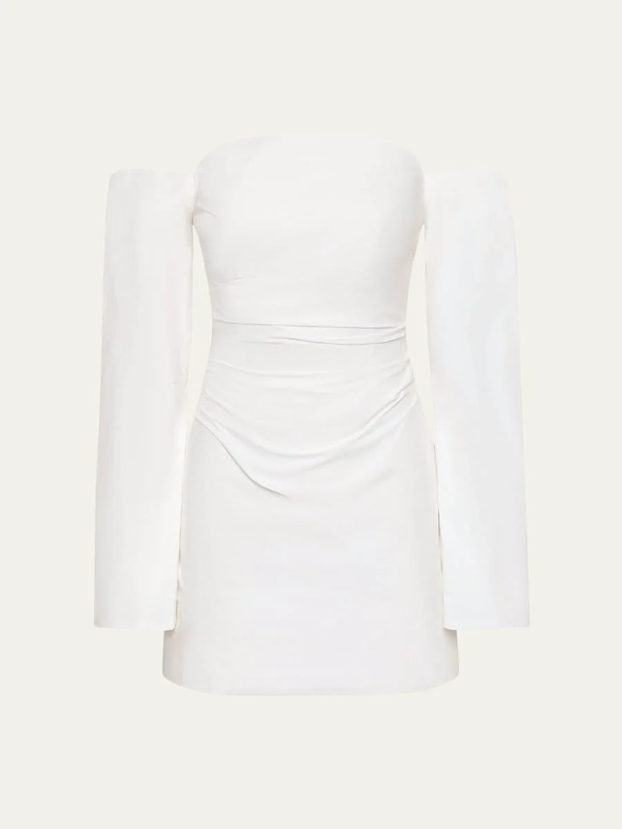 The "Martina" dress by SIR is crafted from crisp cotton poplin and framed with oversized long sleeves Offtheshoulder neckline Long sleeves Internal elastic for secure fit Hem falls above the knee Structured Invisible zipper at the side seam Cotton Fully lined Dry clean Imported