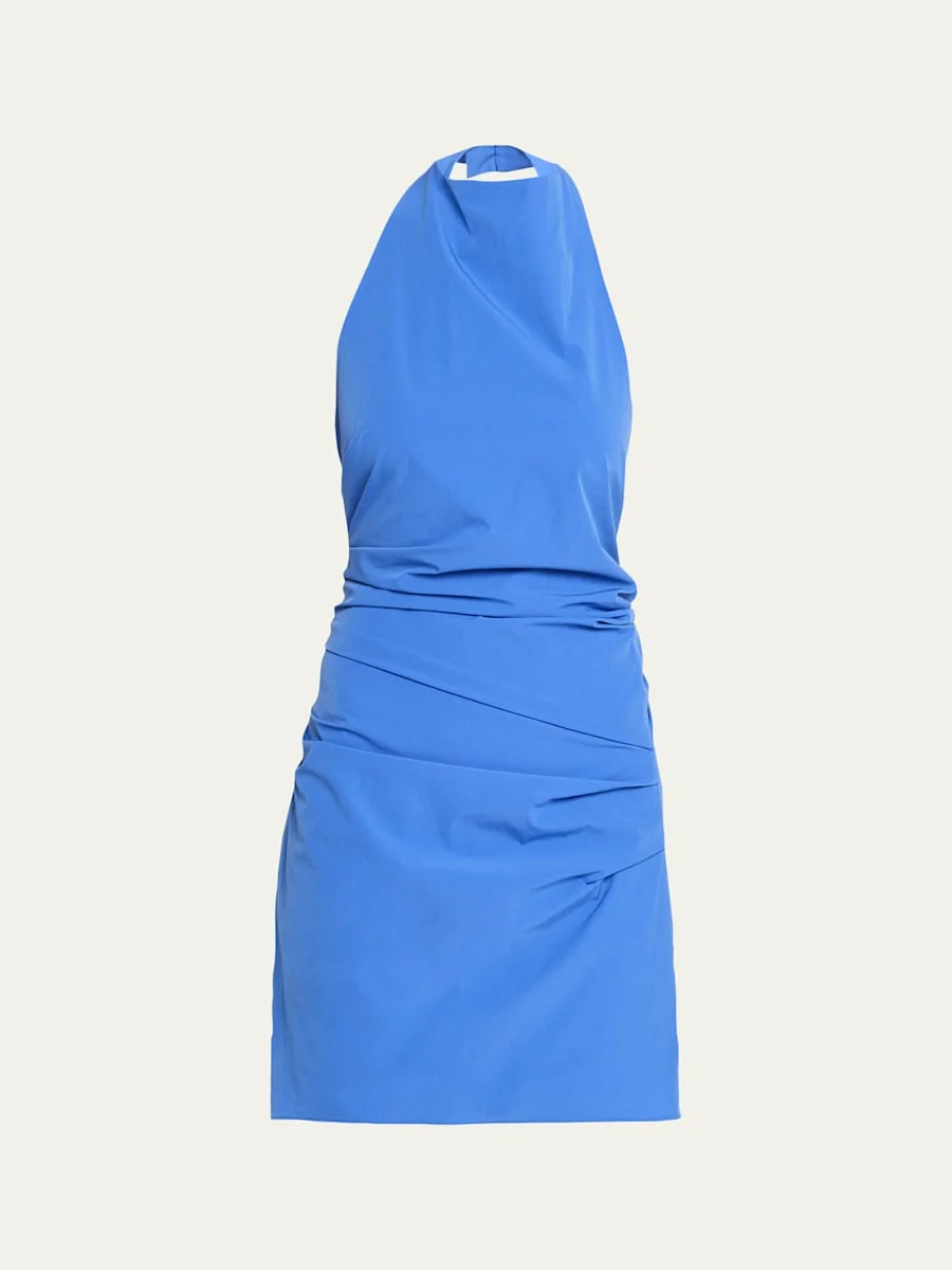 SIR "Sol" mini dress cut from a technical nylon fabric with soft tucks and gathers throughout. Halter neckline Sleeveless Lowcut back Slim silhouette Hem falls above the knee Invisible side zip Nylon/polyamide Dry clean Imported SIZE amp; FITModel measurements: 5'10" tall Model is wearing a US size 4/Small