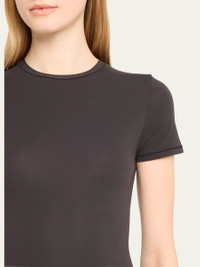 SKIMS body-hugging t-shirt Crew neckline Short sleeves Formfitting Pullover style Nylon/polyamide/spandex Imported Model is 5'10"/177cm. Online Inquiries: BGS21_I2K21| Store Inquiries: #4701877