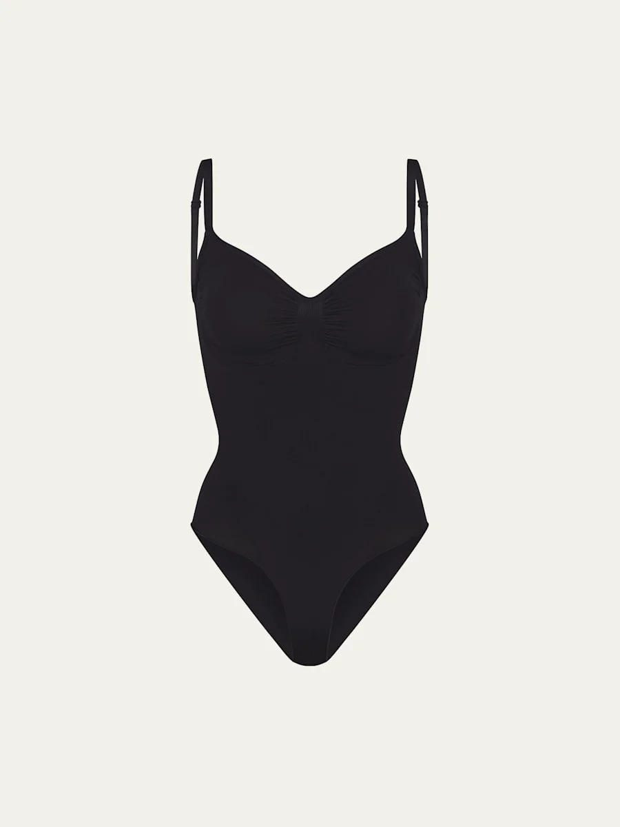SKIMS brief bodysuit with strong targeted compression V neckline Sleeveless Adjustable straps Cheeky seat coverage Formfitting Wide, cotton-lined snap gusset Nylon/polyamide/elastane Imported Proposition 65 warning for California residents Model is 5'10"/177cm. Online Inquiries: BGS21_I2LD8| Store Inquiries: #4836593