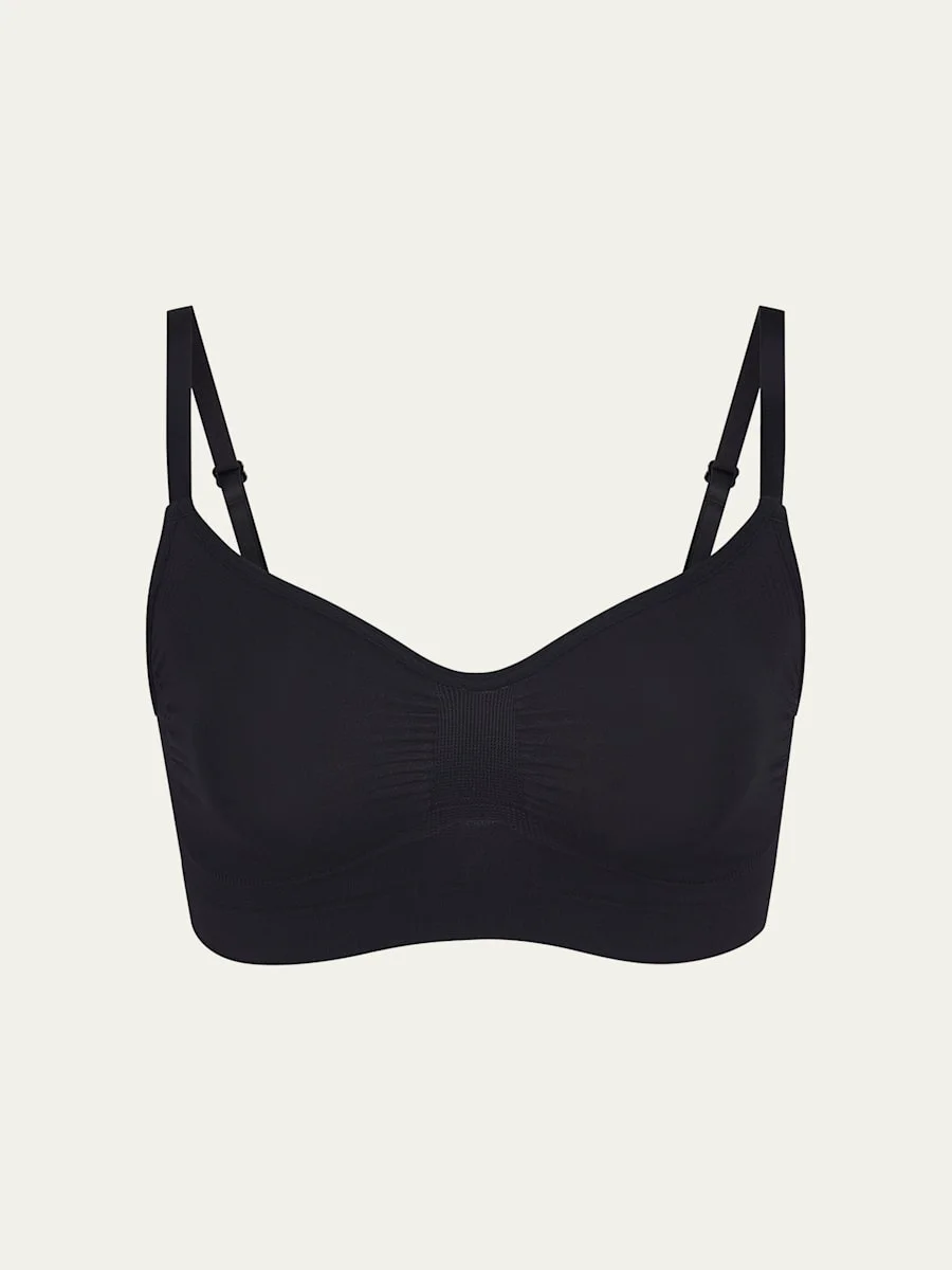 SKIMS bra with strong targeted shaping compression Wireless full-coverage cups Scoop neckline Sleeveless Adjustable shoulder straps Pullover style Nylon/polyamide/elastane Imported Proposition 65 warning for California residents Model is 5'10"/177cm. Online Inquiries: BGS21_I2LCM| Store Inquiries: #4836585
