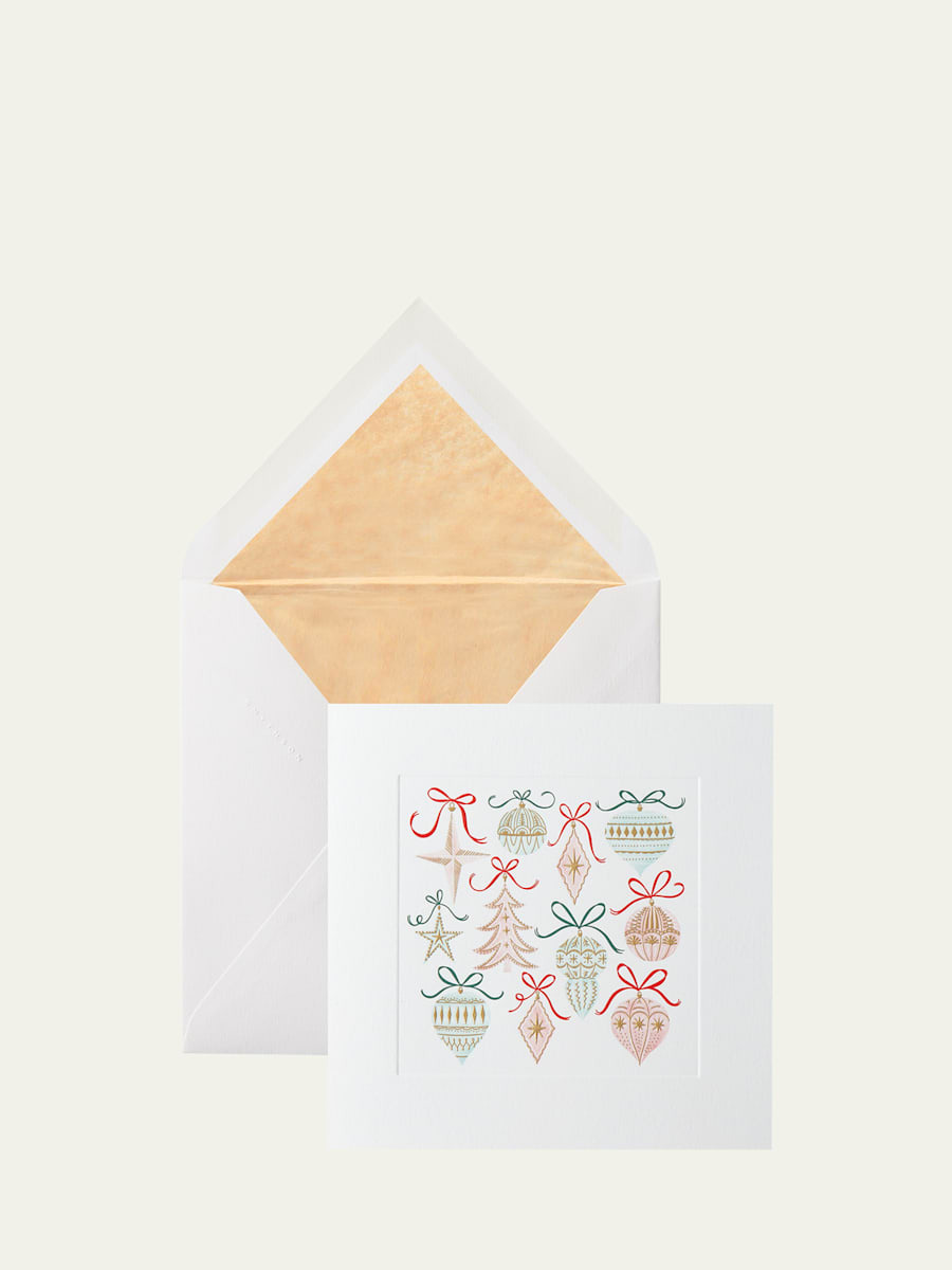 Stationery set with an ornament and bauble motif Blank inside for your own message Matching tissuelined envelopes Each, approx. 6"Sq. Set of 10 paper cards Imported