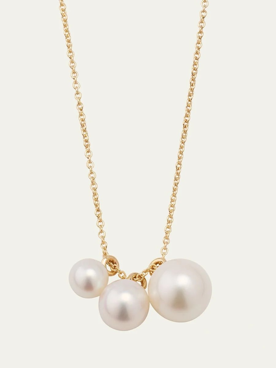 Sophie Bille Brahe necklace with graduating pearls Necklace length: approx. 17 inches (43cm) Recycled 14karat gold with a polished finish Three naturally white freshwater cultured pearls from Asia Imported