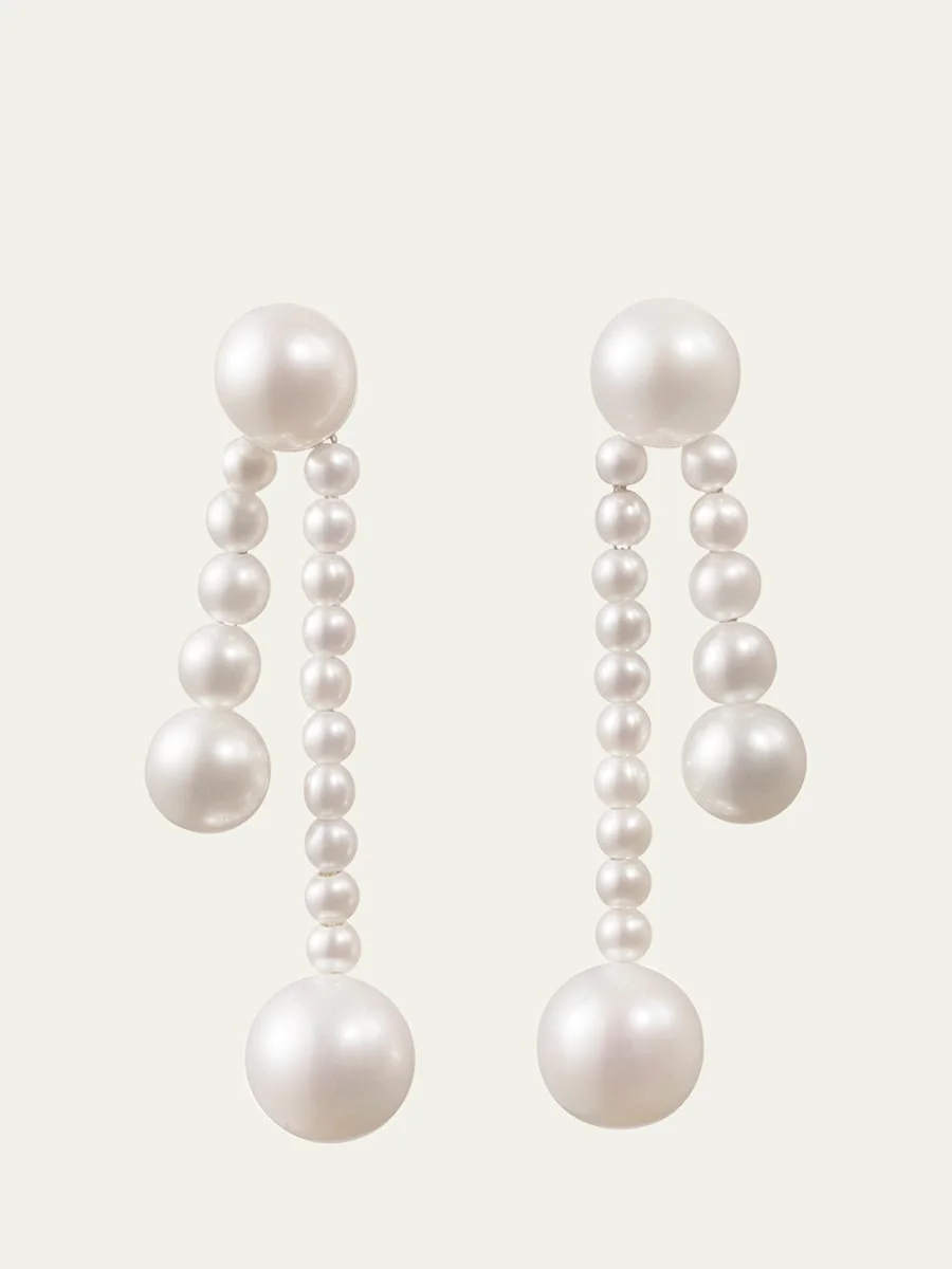 Ruban De Perle Short 2-Strand Drop Earrings in Freshwater Pearls