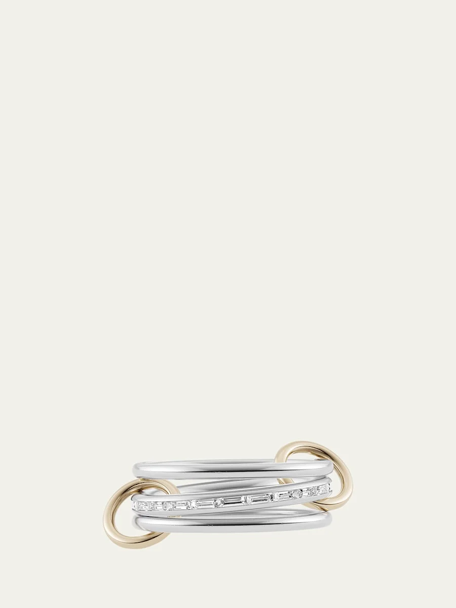 Spinelli Kilcollin ring features handmade linked bands 18-karat white gold with yellow gold connectors White diamonds on the middle band Total carat weight: 1.0 Made in USA Online Inquiries: BGS21_Y7FPA| Store Inquiries: #4340935