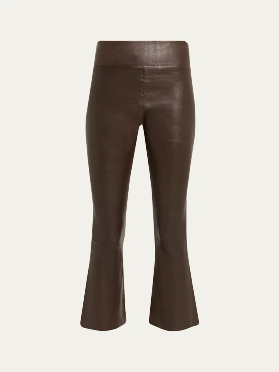 High-Waist Flare-Leg Cropped Leather Leggings