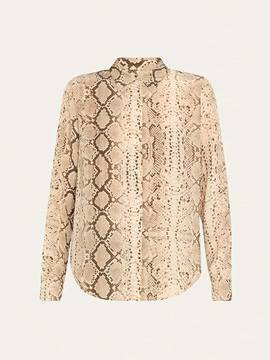 Snake Fitted Button-Front Silk Shirt