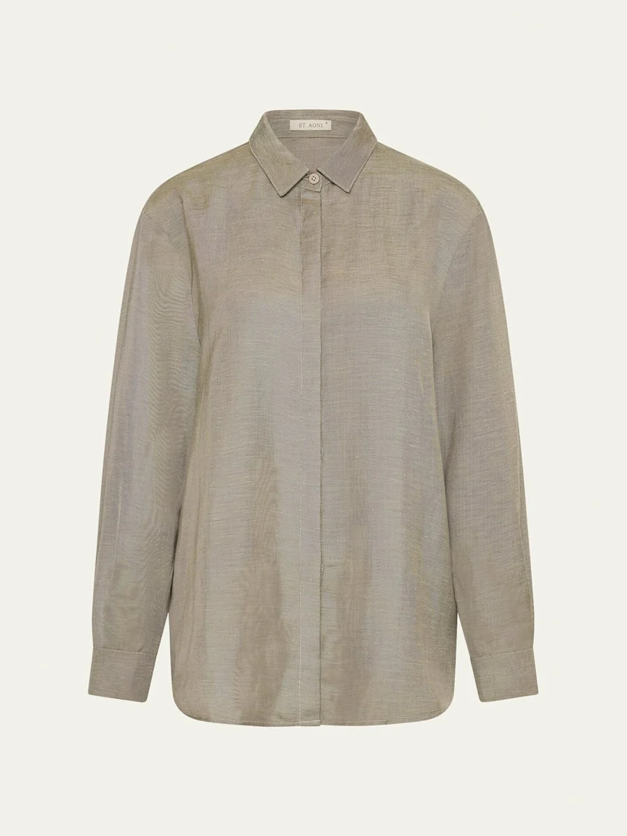 St. Agni classic shirt Point collar Long sleeves with button cuffs Relaxed fit Hem falls to the hip Concealed button-front Viscose/linen Dry clean or machine wash warm Imported Online Inquiries: BGS21_T6LHH| Store Inquiries: #5003891