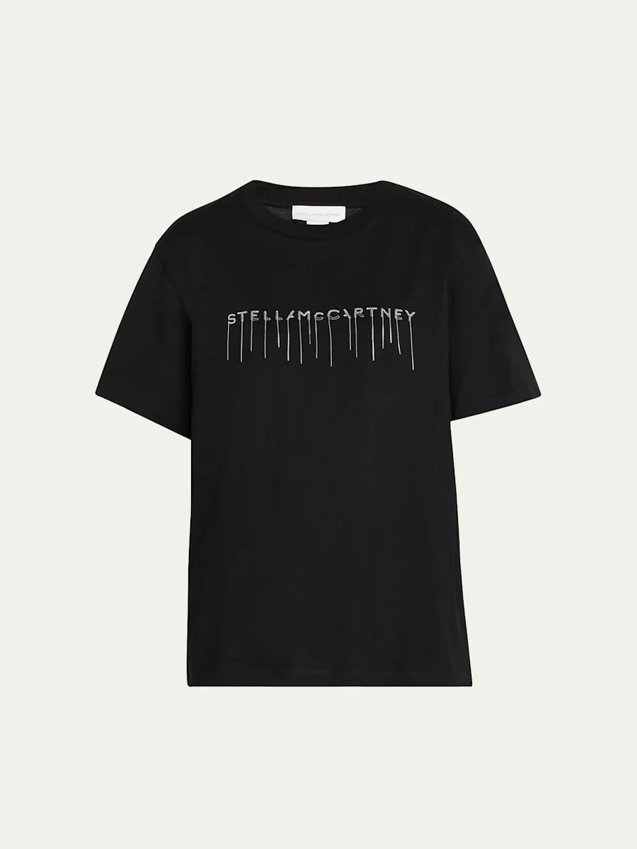 Stella McCartney T-shirt featuring a chain embroidered logo on the chest Crew neckline Short sleeves Oversized fit Pullover style Cotton/brass/polyester Dry clean Made in Italy Online Inquiries: BGS21_BAAR7| Store Inquiries: #5068921