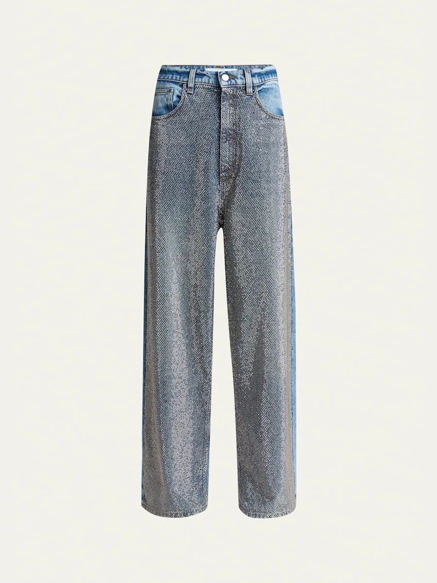 Oversized Rhinestone-Embellished Slouchy Denim Jeans
