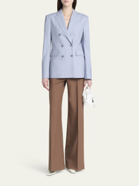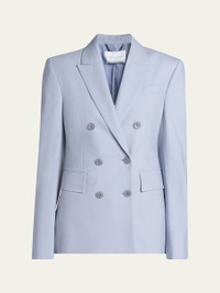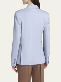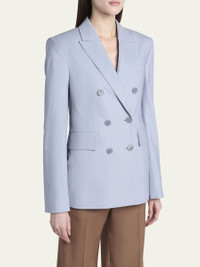 Stella McCartney double-breasted blazer with structured tailoring Peak lapels Long sleeves; button cuff Chest pocket; waist flap pockets Double-vented back Wool Dry clean Imported Online Inquiries: BGS21_BA35Z| Store Inquiries: #5022968