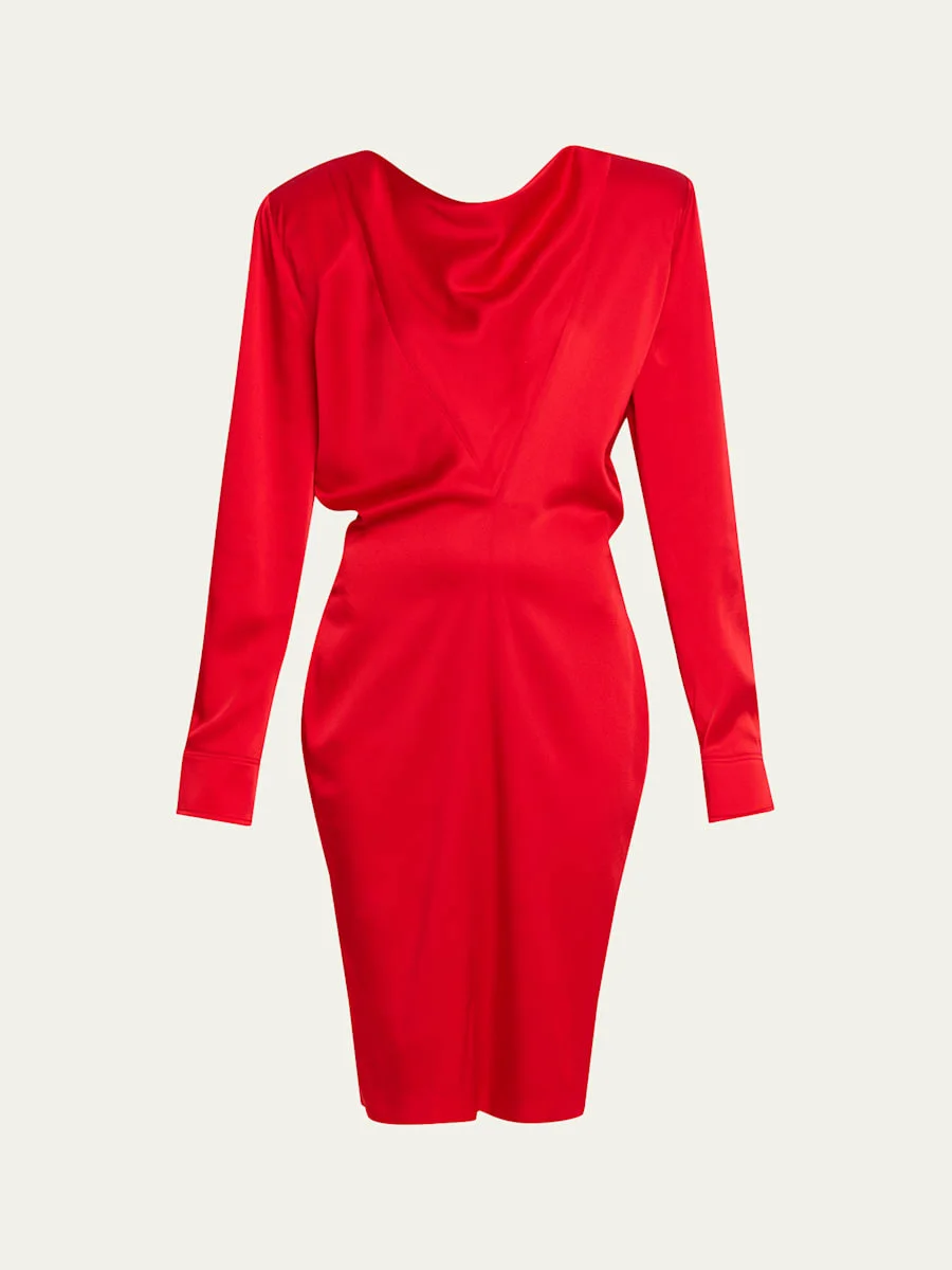 Sensuality and strength meet in this Stella McCartney midi dress, crafted in lustrous viscose satin with bold shoulder pads Cowl neckline Long sleeves Button cuffs On-seam pockets Hem falls below the knee Body-skimming silhouette Invisible back zipper Acetate/viscose Dry clean Made in Italy Online Inquiries: BGS21_BAARC| Store Inquiries: #5068926