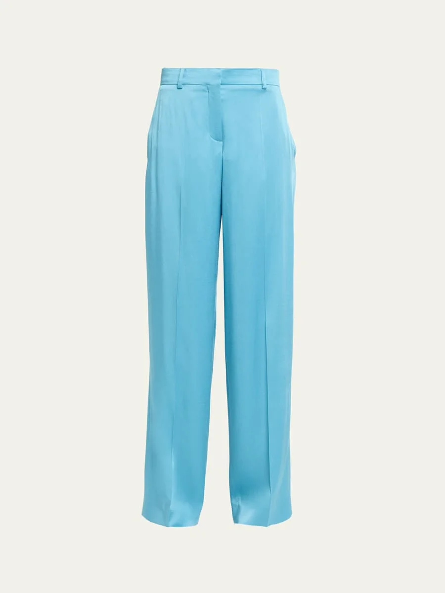 Dropped-Waist Satin Straight-Leg Trousers