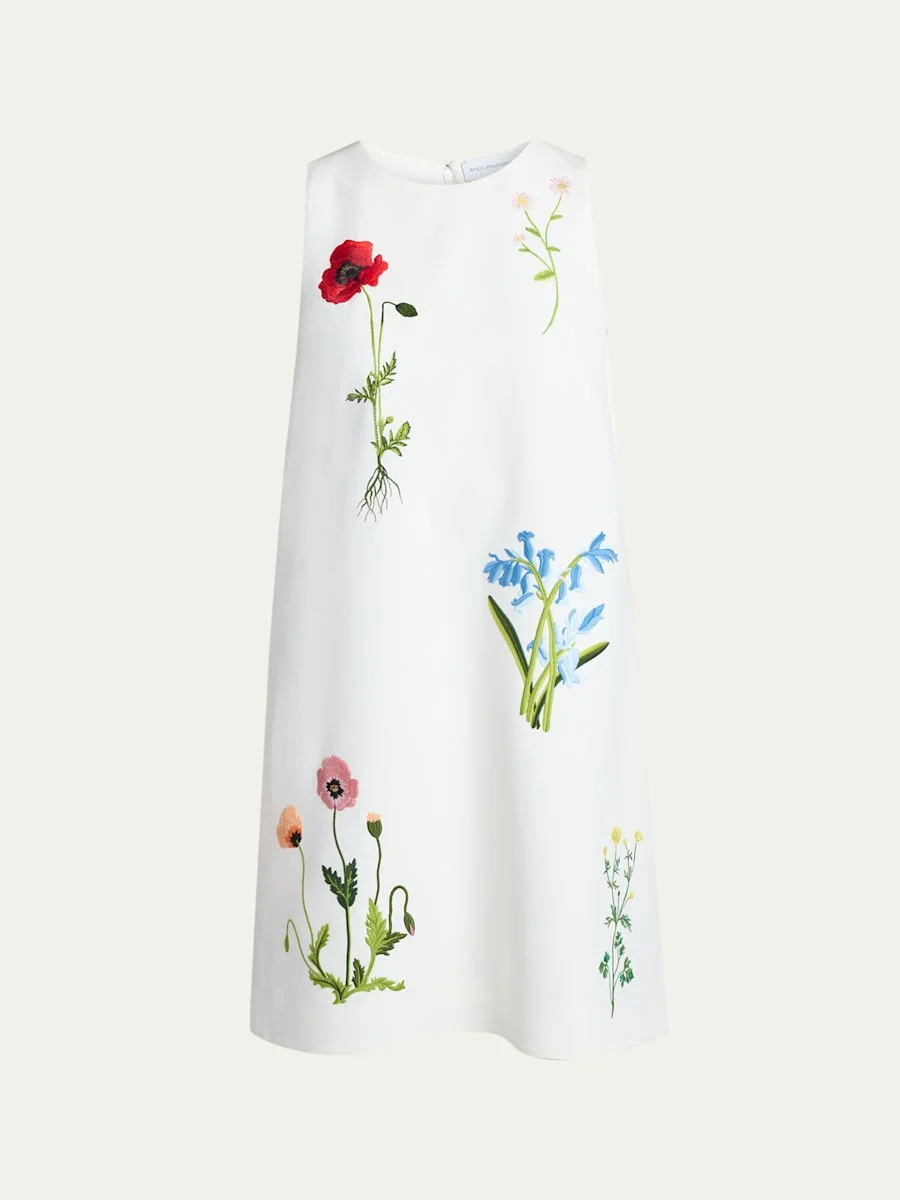 Adorned with floral embroidery, this dress by Stella McCartney is crafted from crepe in a shift silhouette Round neckline Sleeveless Shift silhouette Mini length Invisible back zip Acetate/viscose Dry clean Made in Italy