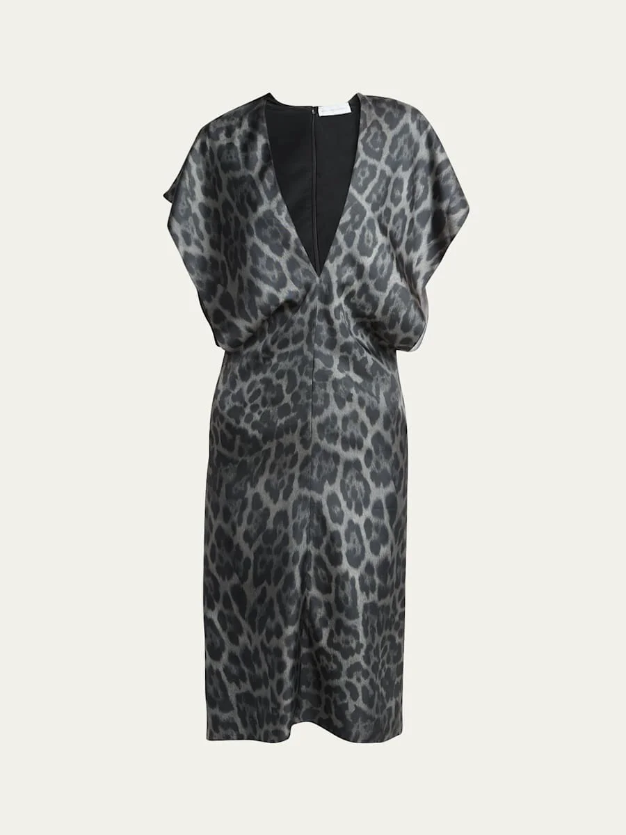 Leopard Print V-Neck Silk Dress