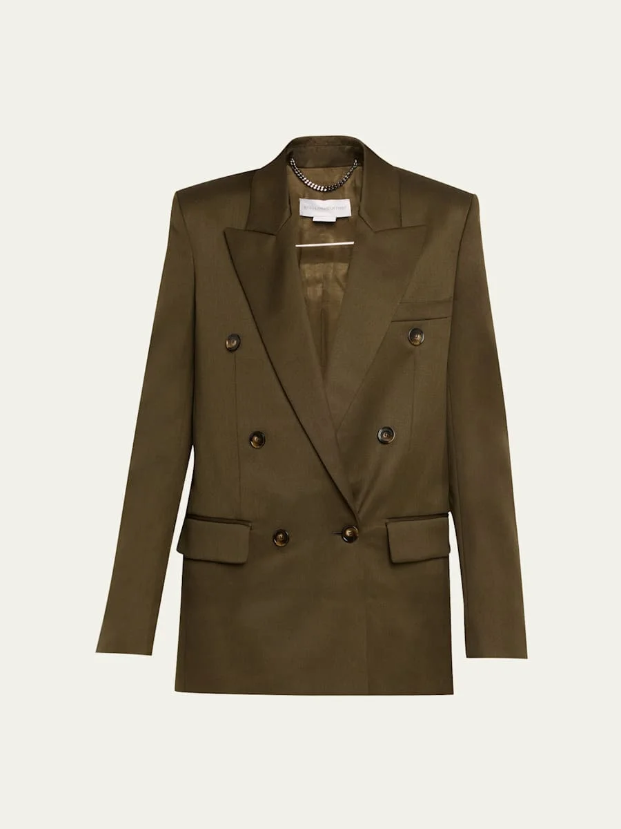 Double-breasted wool-crepe blazer Army green