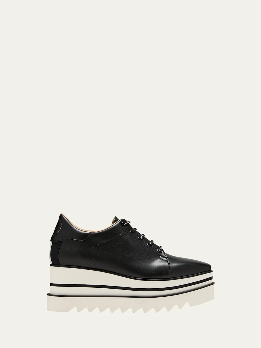 Stella McCartney "Sneakelyse" sneaker loafers in two-tone faux leather (polyurethane) 3.15 in / 80 mm colorblock demi-wedge heel; 2.75 in / 70 mm platform Round toe Lace-up vamp Web strap and logo accent at backstay Shark tooth rubber sole Made in Italy Online Inquiries: BGS21_X653Q| Store Inquiries: #4557152