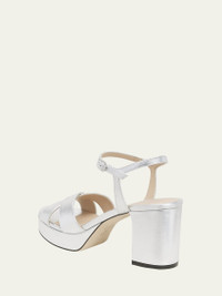 Stuart Weitzman "Dayna" metallic calf leather platform sandals 3.15 in / 80 mm block heel Open toe Crisscross vamp Adjustable ankle strap Leather outsole Lining: Leather Professional cleaning recommended, hand wash, spot clean Made in Spain Online Inquiries: BGS21_X6TYC| Store Inquiries: #4967096