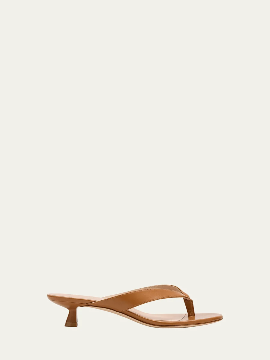 Stuart Weitzman "Rio" sandals in smooth calf leather 1.38 in / 35 mm kitten heel Open toe Thong strap Leather lining and outsole Slipon style Professional cleaning recommended Made in Spain