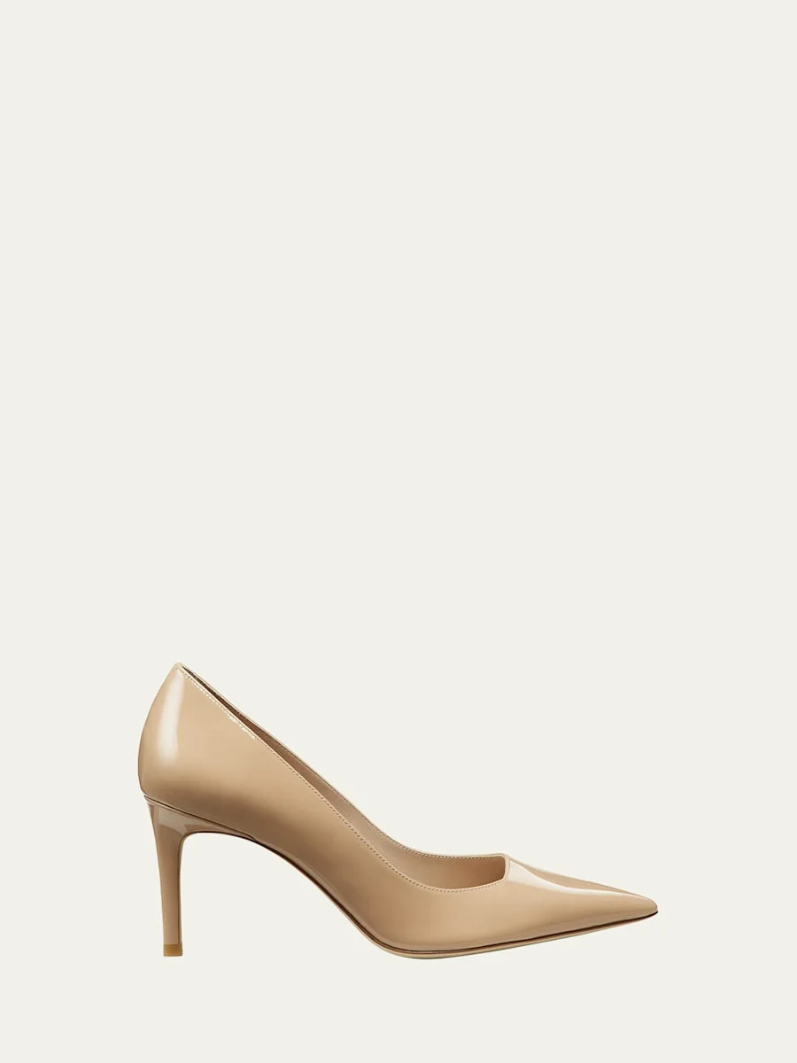 Stuart Weitzman "Stuart" patent leather classic pumps 3.00 in / 75 mm stiletto heel Pointed toe Slipon style Leather outsole Lining: Leather Professional cleaning recommended, hand wash, spot clean Made in Spain