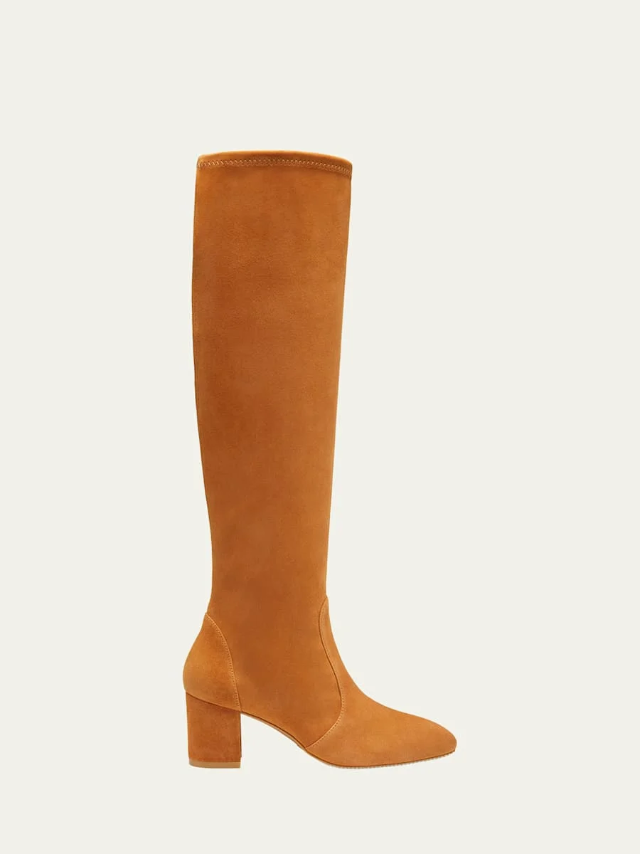 Stuart Weitzman "Yuliana" suede knee boots 2.36 in / 60 mm block heel Round toe Pull-on style Leather outsole Lining: Leather Professional cleaning recommended, spot clean Made in Spain Shipping Direct from Vendor, usually ships within 15 business days. Online Inquiries: BGS21_X6T2N| Store Inquiries: #4951548