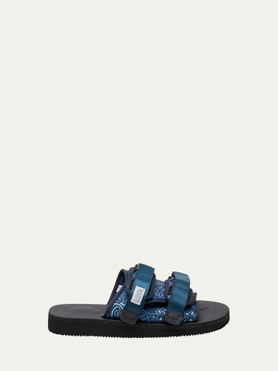 Suicoke "Moto Cab" sporty sandals in bandana-printed nylon 1.00 in / 25 mm flatform heel Open toe Dual grip strap upper Slide style Footbed fights growth of bateria, mold, stains & odors Rubber outsole Wipe clean Imported Online Inquiries: BGS21_X5PZ8| Store Inquiries: #4288213
