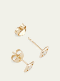 Sydney Evan evil eye stud earring. 14-karat yellow gold as hardware. Round-cut white diamond as pupil. 0.06 total diamond carat weight. Post back for pierced ears. Sold individually. Imported. Item Note: Sold as a single earring. Online Inquiries: BGS21_JCWLG| Store Inquiries: #1936948