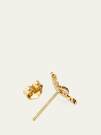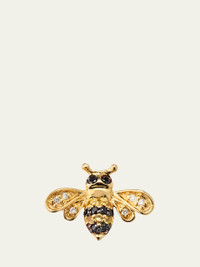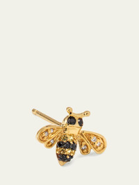 Sydney Evan single mini bee stud earring. Polished 14karat yellow gold hardware, Twotone diamond and sapphire pave. 0.02 total yellow sapphire carat weight. 0.02 total white diamond carat weight. 0.04 total black diamond carat weight. Post backs for pierced ears. Sold individually. Imported.