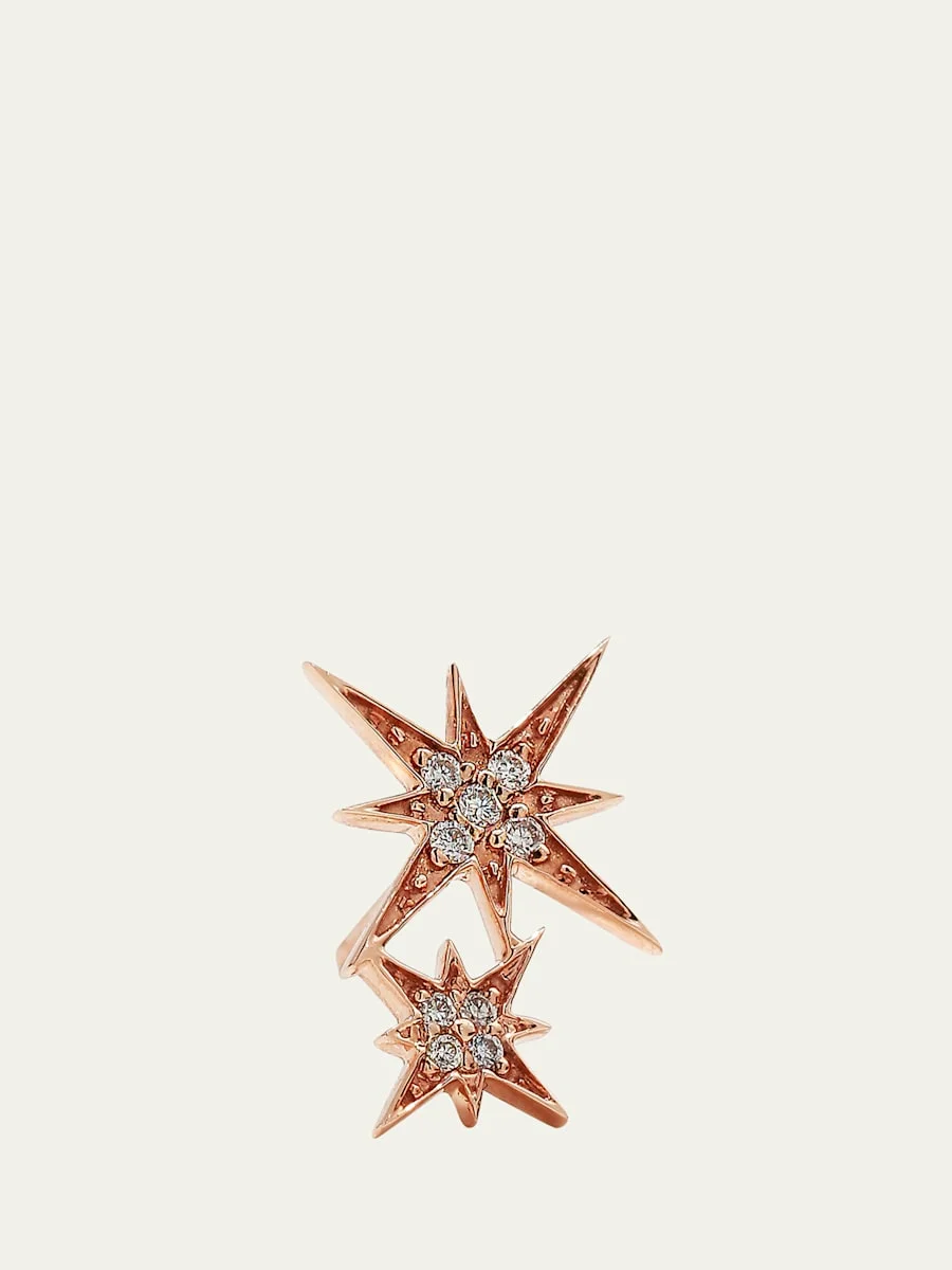 Sydney Evan asymmetric stud earring. 14-karat rose gold. Pave diamond double-starburst frames. 0.04 total diamond carat weight. Post backs for pierced ears. Imported. Item Note: Sold as a single earring. Online Inquiries: BGS21_Y7R3U| Store Inquiries: #2160588