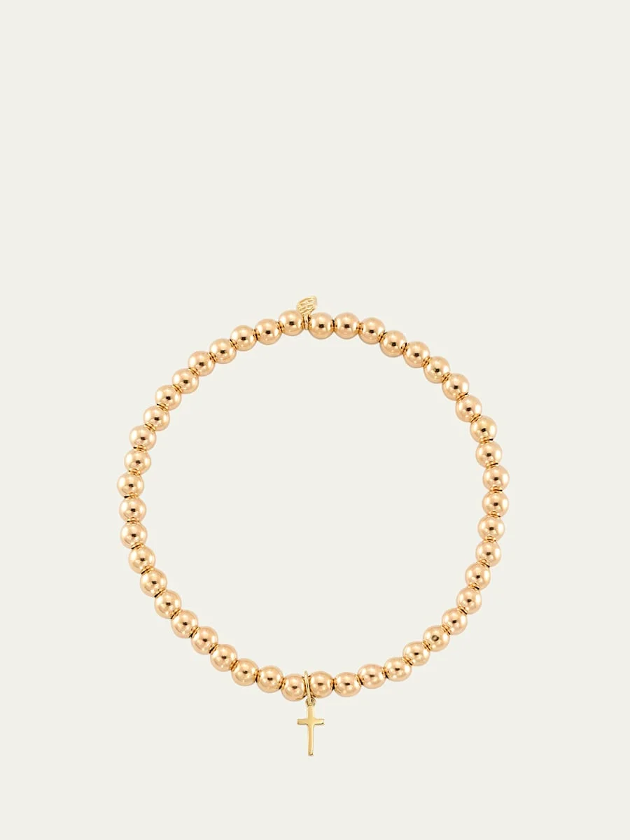 The traditional cross is a key element of the pure and minimalist theme of this Sydney Evan beaded stretch bracelet. Approx. 6.25" circumference Polished 14-karat yellow gold Please use caution when applying hairsprays, lotions, colognes, and perfumes. Stretchy; slip-on style Imported Online Inquiries: BGS21_Y7QF7| Store Inquiries: #5077242
