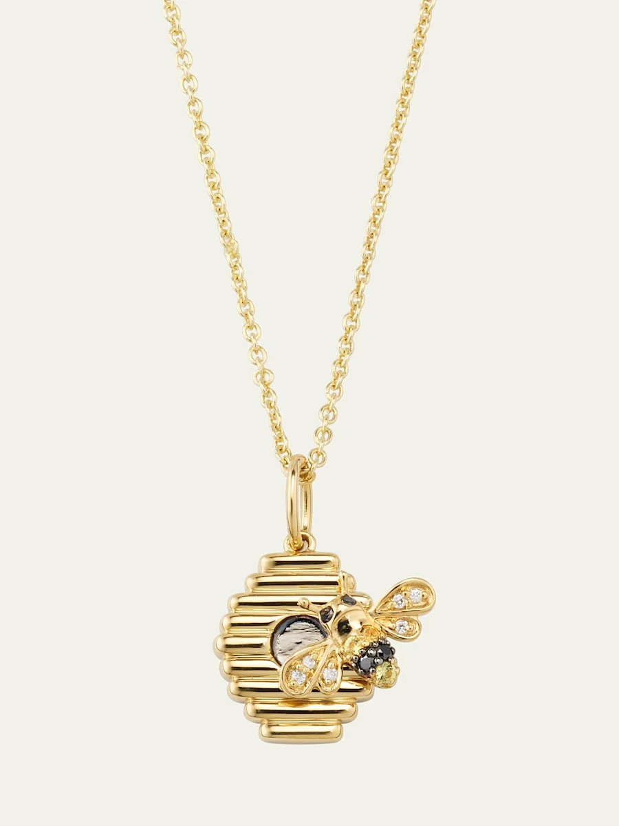 Sydney Evan necklace 14karat yellow gold Black and white diamonds Yellow Sapphire 0.12 total diamond carat weight 0.02 total sapphire carat weight Approx. 1618"L; adjustable length Lobster clasp Wipe clean Imported