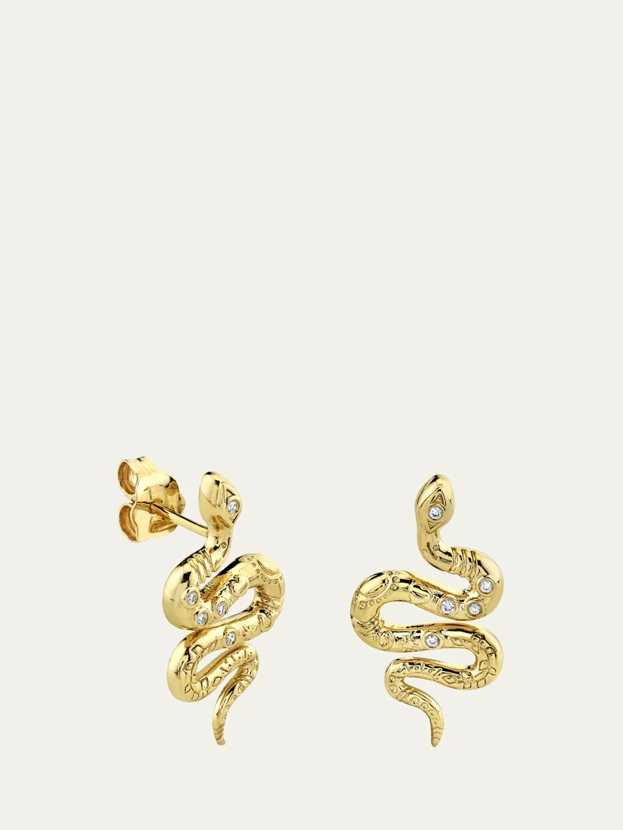 Sold as a single stud, this Sydney Evan earring coils with a snake silhouette and white diamonds. Approx. 7/8"H x 1/2"W Polished 14karat yellow gold Diamond total carat weight: 0.03 For pierced ears Sold individually Imported