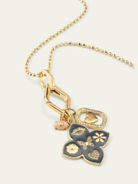 14K Yellow Gold Enamel Icon Moroccan Flower Pendant Necklace with Diamonds