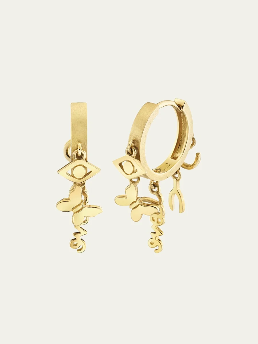 Sydney Evan huggie hoop earrings 14karat yellow gold Icon dangle charms Leverback closure For pierced ears Spot clean, wipe clean Imported