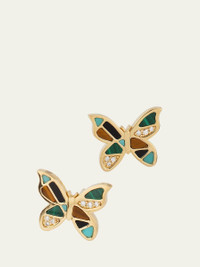 14K Yellow Gold Mosaic Butterfly Stud Earrings with Diamonds