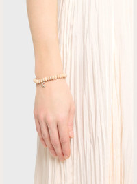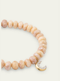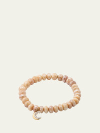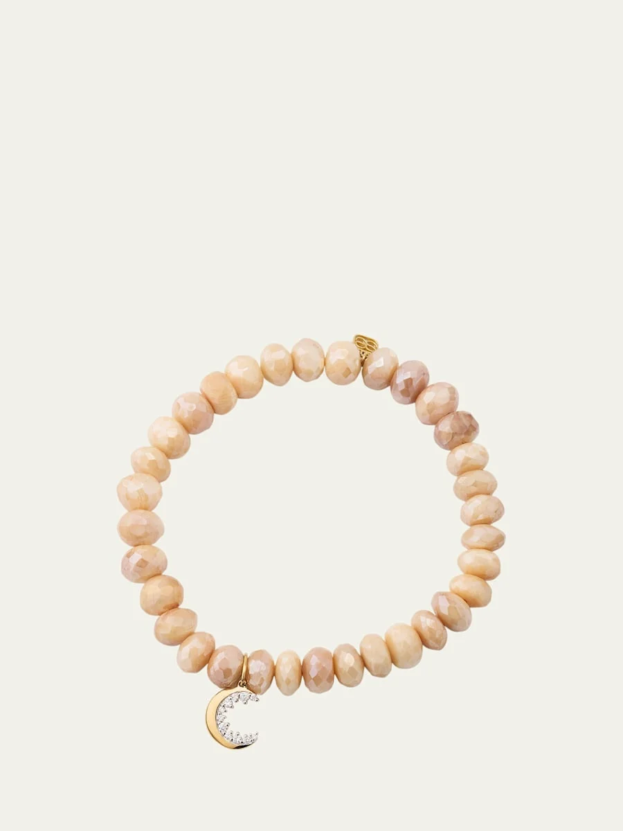 14K Yellow Gold Small Cocktail Crescent Moon Charm Beaded Bracelet with Diamonds