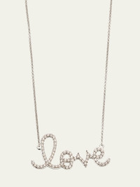 Sydney Evan pendant necklace. 14-karat yellow gold. Integrated "love" script pendant with glittering white pave diamonds. 0.34 total diamond carat weight. Cable chain, 16"L. Lobster clasp. Imported. Online Inquiries: BGS21_Y674H| Store Inquiries: #2160924