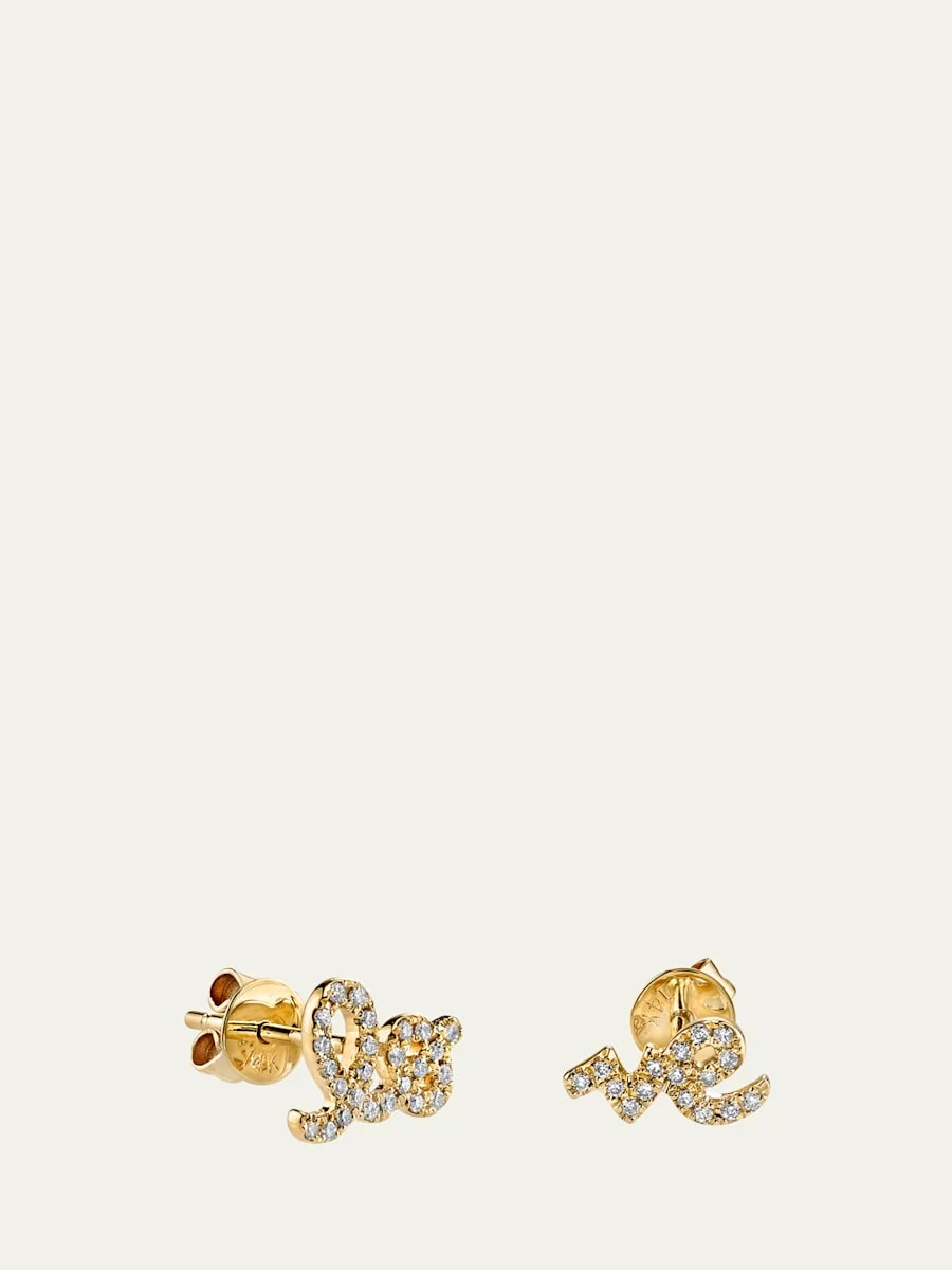 Sydney Evan "love" script earrings Polished 14karat solid gold 39 brilliant round diamonds Total carat weight: 0.11 Spot clean, wipe clean Left and right ear specific For pierced ears Imported