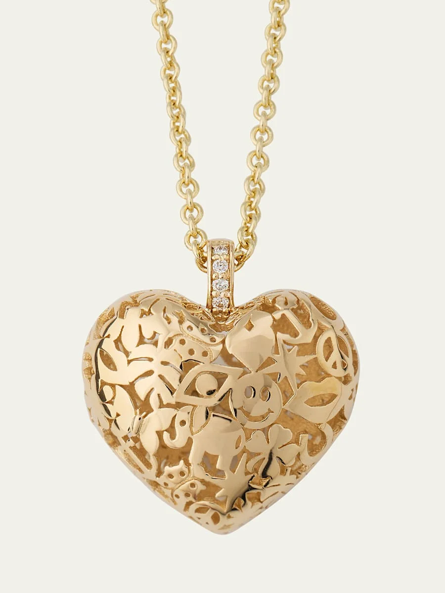 Symbols of good luck and positivity are overflowing for this Sydney Evan pendant necklace. The heartshaped pendant is composed of iconic motifs and finished with a diamond pave bail. Approx. 18" length Polished 14karat yellow gold Four colorless HI diamonds Diamond total carat weight: 0.0211 Adjustable length Lobster clasp Imported
